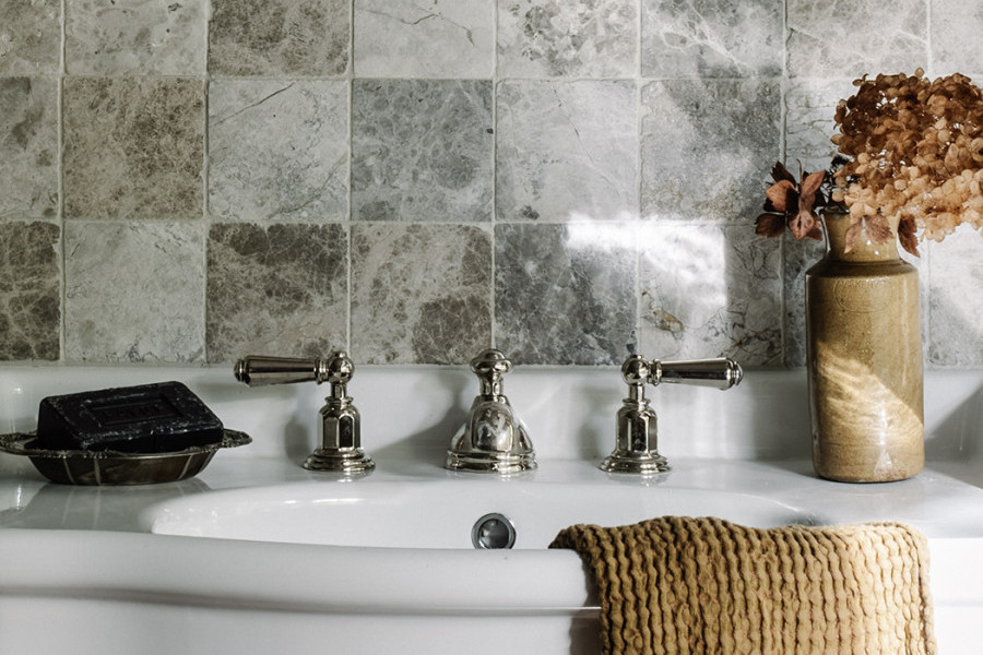 Perrin & Rowe - 3 hole basin mixer with low spout & white porcelain lever taps N3705 View Product Add to List