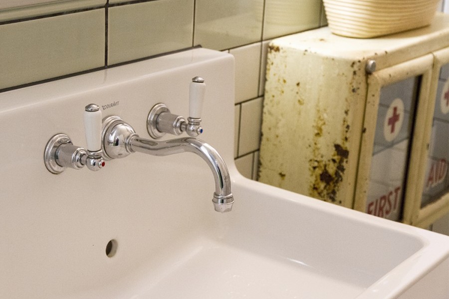 Perrin & Rowe - Wall-mounted basin mixer with country spout & white porcelain lever taps N3790 View Product Add to List