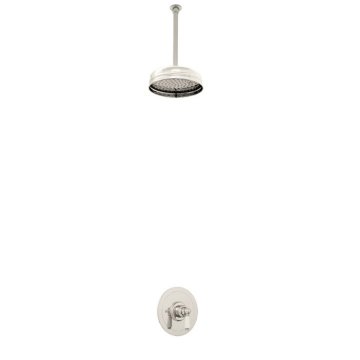 Within the bathrooms, Perrin & Rowe’s nickel basin taps, and shower components extend this design narrative by Emily Gillis. Their refined silhouettes sit comfortably against the backdrop of lime-rendered walls, veined stone, and the gentle curves that define the wet areas.