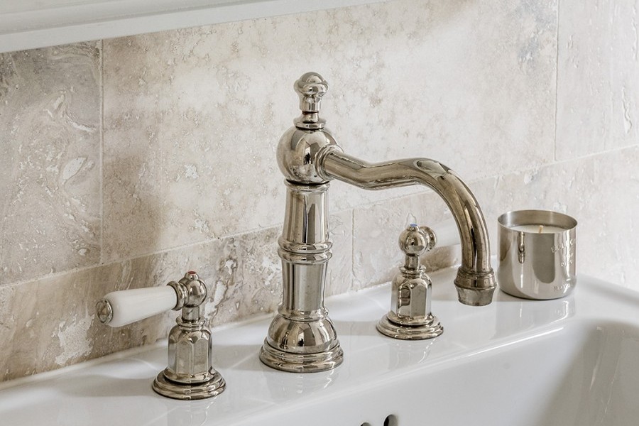 Perrin & Rowe - 3 hole basin mixer with country spout & white porcelain lever taps N3720 View Product Add to List