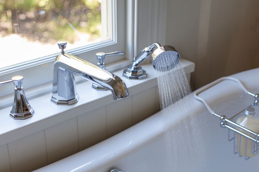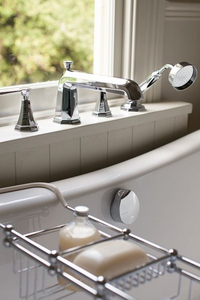 Perrin & Rowe - Deco 4 hole hob mounted bath mixer with handshower & lever taps N3148 View Product Add to List