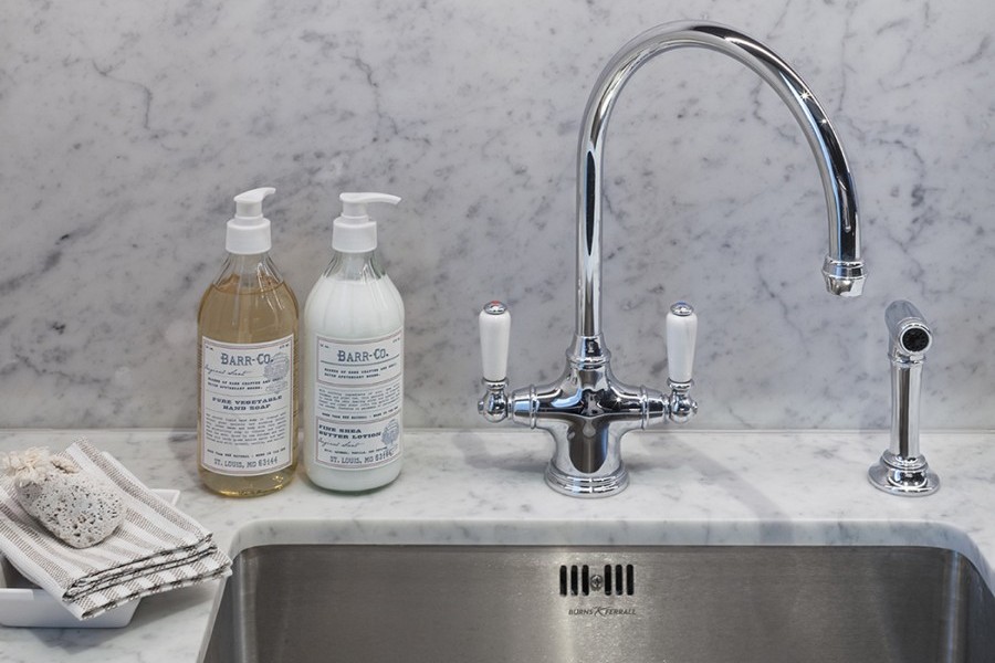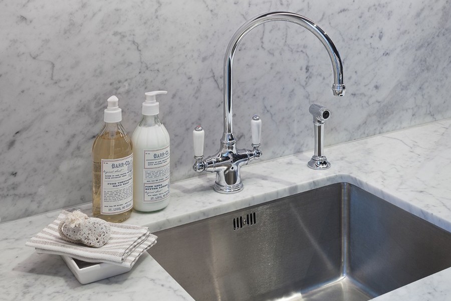 Perrin & Rowe - Phoenician 1 hole sink mixer with white porcelain lever taps & spray rinse N4360 View Product Add to List