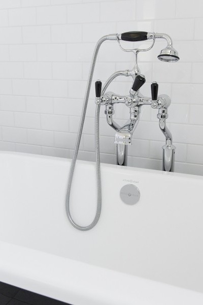 Perrin & Rowe - Bath filler on floorlegs with handshower in cradle & lever taps N35201 View Product Add to List