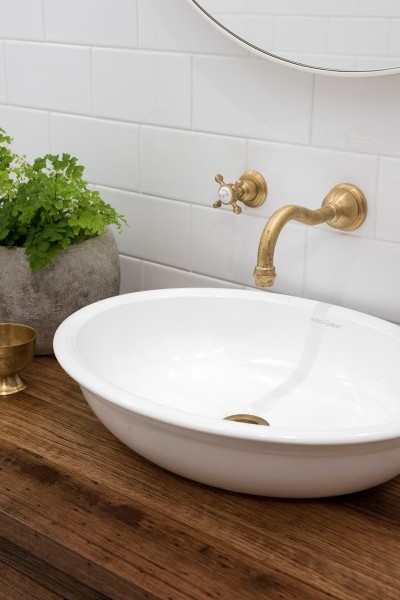In this historic home, the timeless qualities of satin brass fittings fit perfectly with the owners’ desire to blend industrial style with a recycled vibe.
