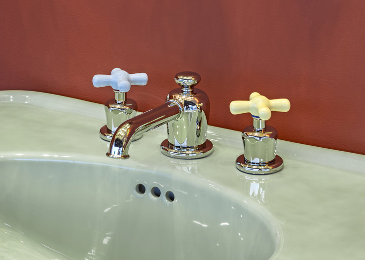 The Water Monopoly - Rockwell 3 hole basin mixer with low spout & metal/coloured crosshead taps N9197 View Product