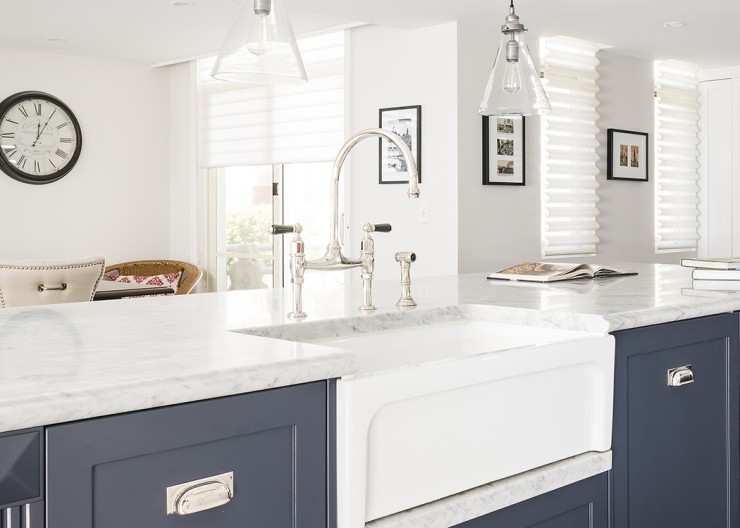 Perrin & Rowe - Ionian 2 hole bench mounted sink mixer with straight legs, porcelain lever taps & spray rinse N4173 View Product