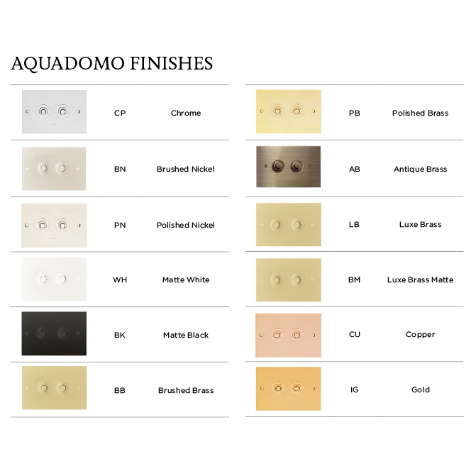 Made from solid brass, these flush plates are available in a range of finishes: chrome, gold, nickel, platinum and polished brass.
