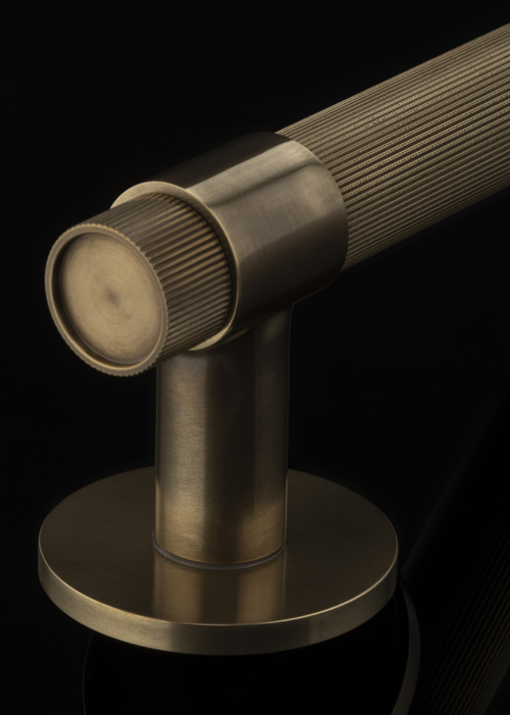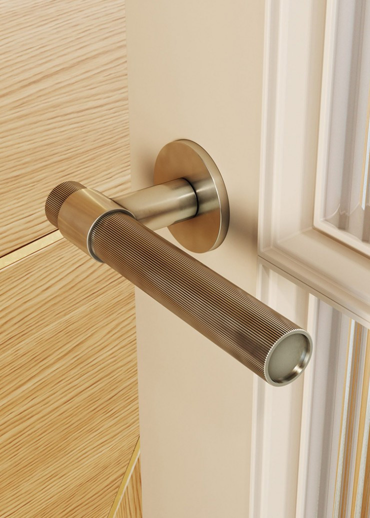 Joseph Giles - Montgomery solid brass door lever handle with linear knurl & round rose LV1195 View Product