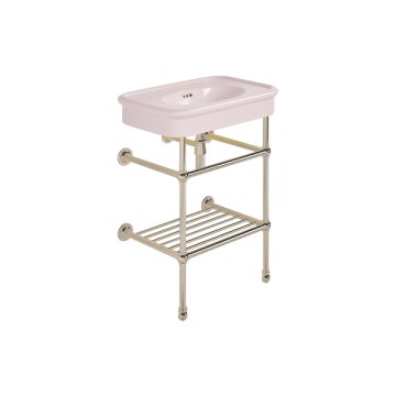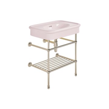 The Water Monopoly - Rockwell 610mm Pale Pink basin on basin stand with shelf. Zero, one or three tap holes. WM-RW-610BSF-PK View Product
