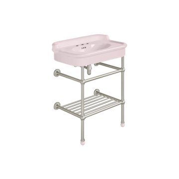The Water Monopoly - Rockwell 680mm Pale Pink basin with upstand on basin stand with shelf. Zero, one or three tap holes. WM-RW-680BSF-PK View Product