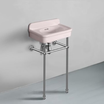 The Water Monopoly - Rockwell 680mm Pale Pink basin with upstand on basin stand. Zero, one or three tap holes. WM-RW-680BS-PK View Product