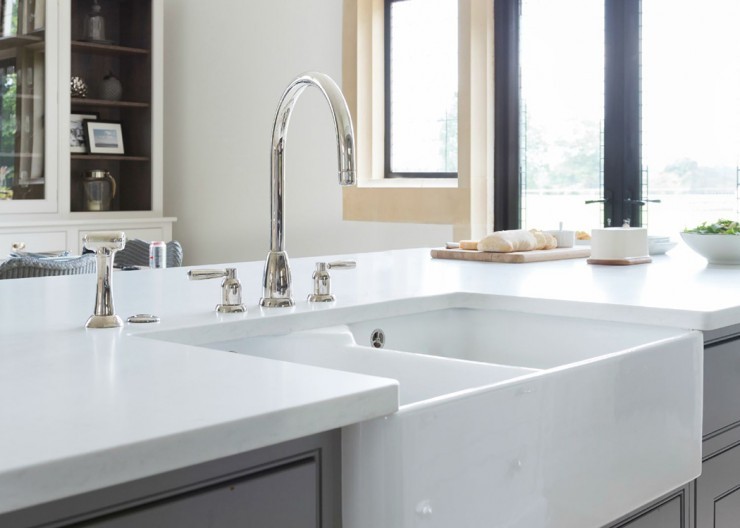 Perrin & Rowe - Oberon one hole sink mixer with twin levers, square spout and spray rinse N4868 View Product
