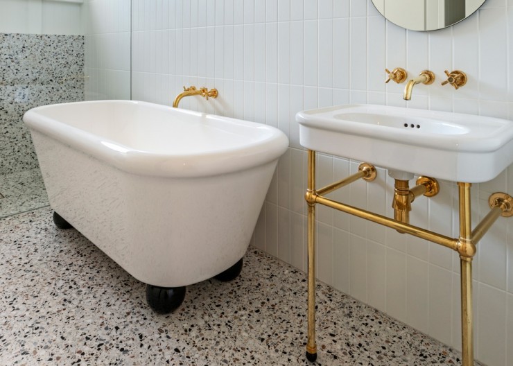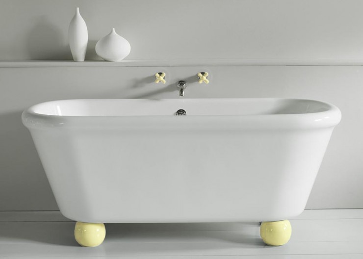 The Water Monopoly - Rockwell bath in white with Sherbet Yellow feet 1700 x 800mm WM-RW-BATH-WH-WITH-ROCKWELL-FEET-YW View Product