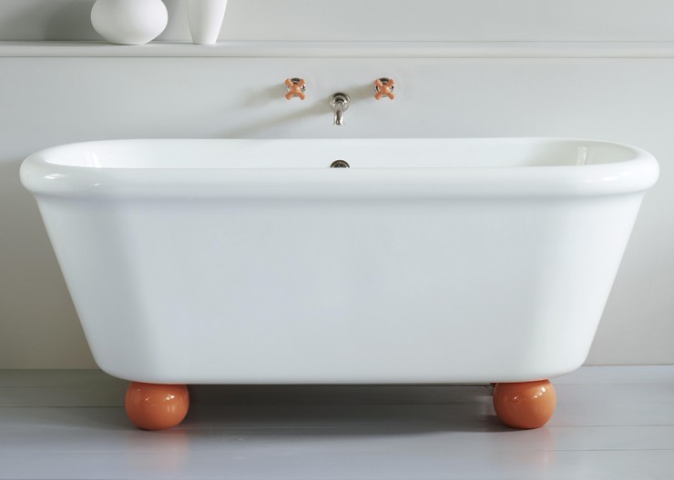 The Water Monopoly - Rockwell bath in white with Squash Orange feet 1700 x 800mm WM-RW-BATH-WH-WITH-ROCKWELL-FEET-OR View Product