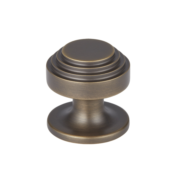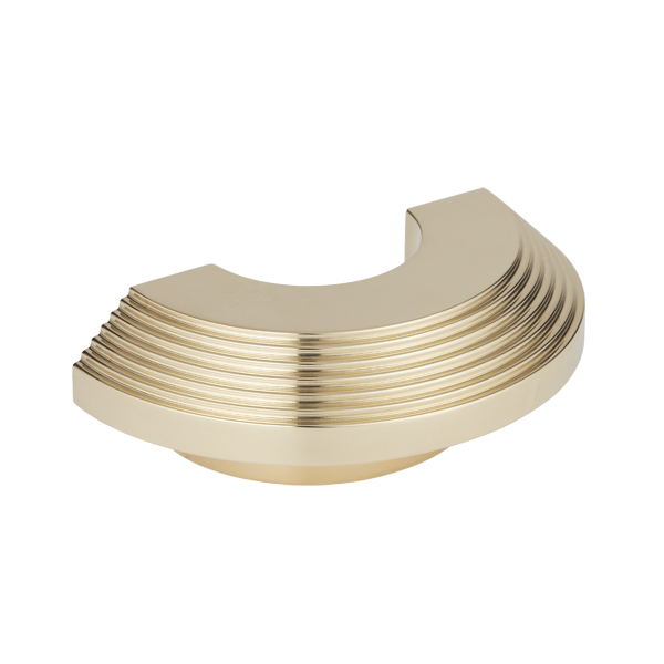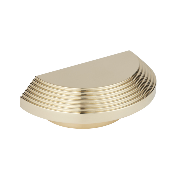 This is Victoria, a cocktail-inspired collection of luxury brass hardware. Drawing inspiration from Victoria Square in Birmingham where the city's atmospheric cocktail district begins, expect grand textures emulating opulent reeded glassware within the Victoria collection. Refined tiered stepped details envelop the edges of each piece, bringing a sophisticated deco statement to this expertly crafted range of brass cabinet knobs and pulls, alongside a wall hook. Forming part of a trio of design stories within Armac Martin's decadent Cocktail range, this is interior hardware that radiates luxury. The Victoria collection is available in Stepped and Plain options. The Victoria collection comprises: