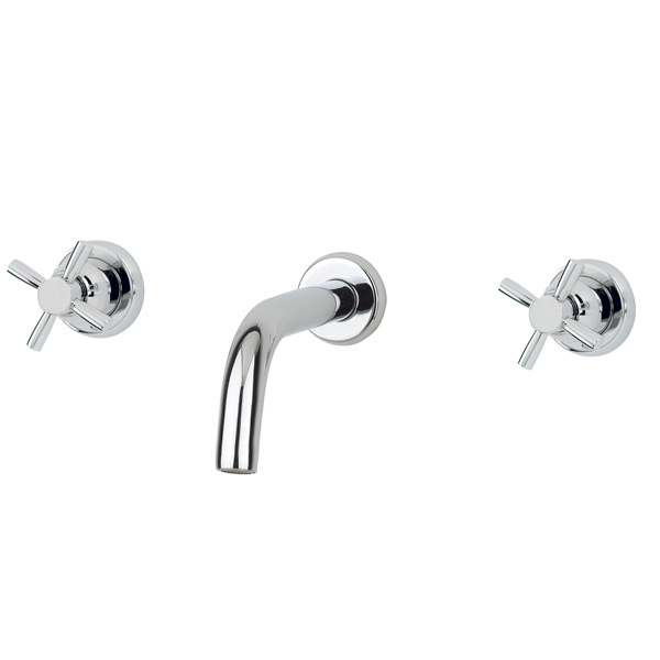 Perrin & Rowe - Langbourn wall-mounted basin mixer with modern spout & metal lever taps Unit Code: N3321