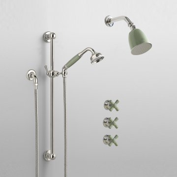 The Water Monopoly - Rockwell shower layout RW3 with rail shower & crosshead shower taps with colour options Unit Code: SHOWER-SET-RW3